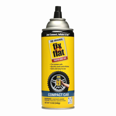 Fix-A-Flat 12 oz. Cone Top Tire Inflator/Sealer. It has an eco-friendly formula and economically sized cone top applicator which screws directly onto tire valve. It is ideal for 13" & 14" wheels and has a non-flammable formula. It seals tires up to 1/4". Comes in can.